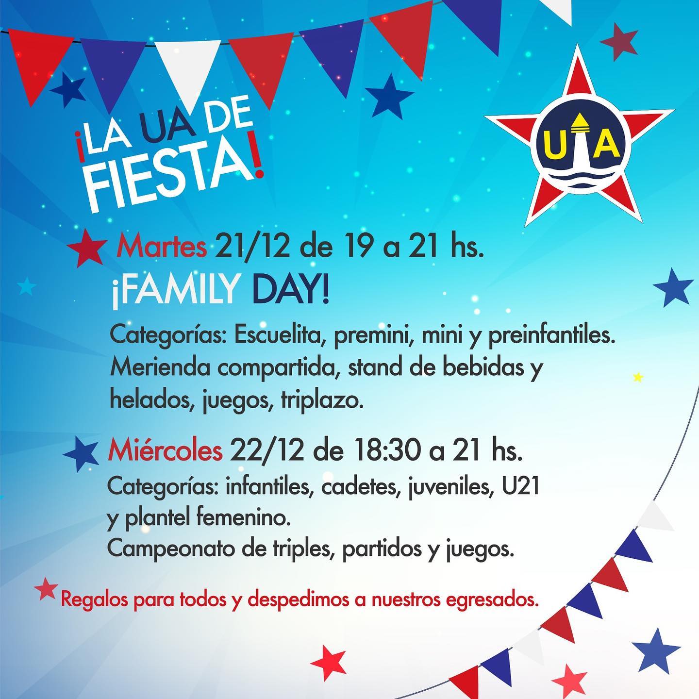 Los próximos días martes y miércoles serán las despedidas de formativas, dando por finalizadas las actividades del año. Para el family day solicitamos, por protocolo,